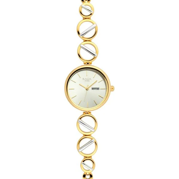 Titan Raga Viva Silver Dial Analog with Day and Date Metal Strap Watch for Women