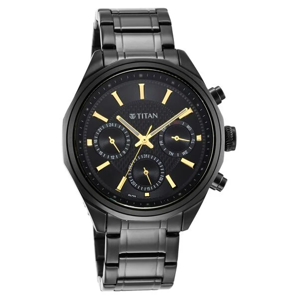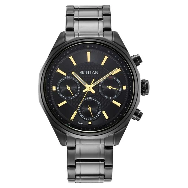 Display Brand Titan Name Titan Regalia Opulent Multifunction Black Dial Black Stainless Steel Strap Watch For Men