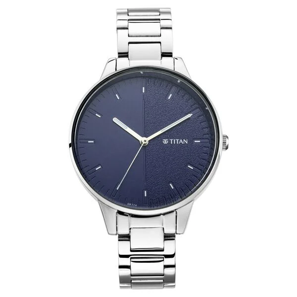 Titan Women's Precision Simplicity Watch: Blue Gradient Dial with Metal Strap