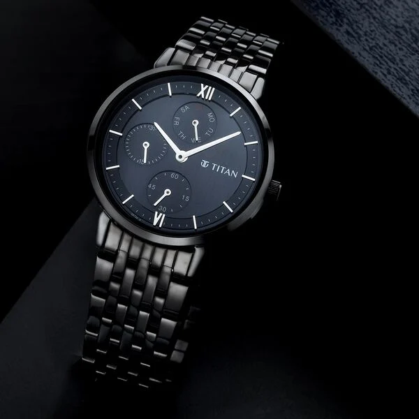 Revel in the sultry and sophisticated charm of this black beauty. The black satin-finish dial with multiple subdials, black-plated steel case, and steel metal bracelet exude timeless elegance. Pair it with a black evening gown or a tailored black suit for a captivating and refined look.