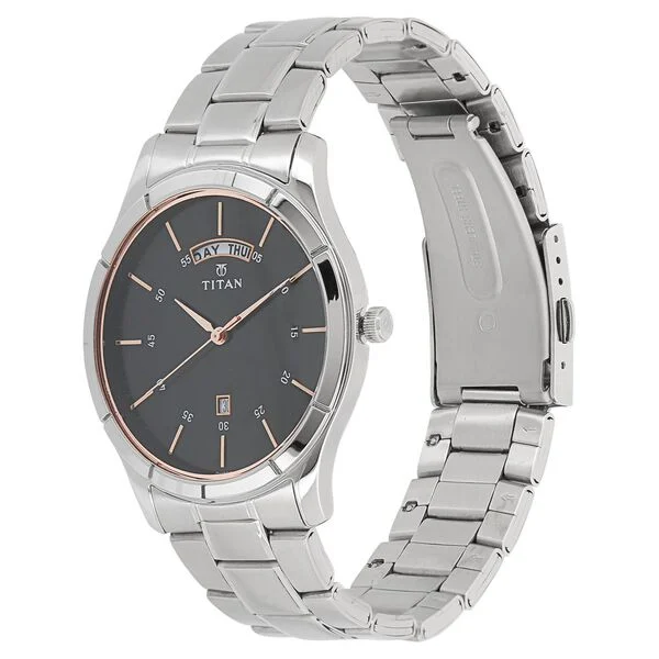 Titan Workwear Black Dial Analog with Day and Date Stainless Steel Strap watch for Men