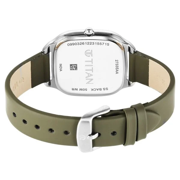 Titan Workwear Quartz Analog White Dial Green Leather Strap Watch For Women