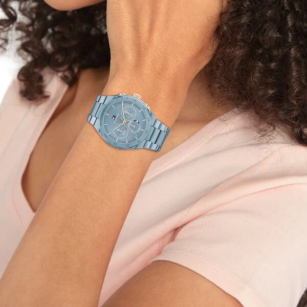 Name Tommy Hilfiger Quartz Multifunction Blue Dial Stainless Steel Strap Watch for Women