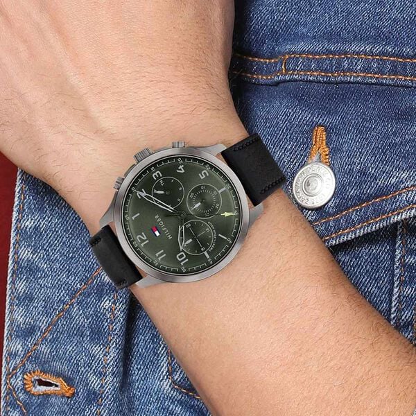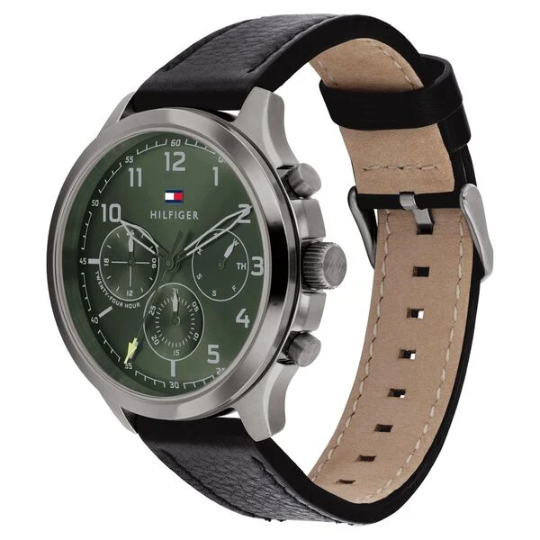 Name Tommy Hilfiger Quartz Multifunction Green Dial Leather Strap Watch for Men