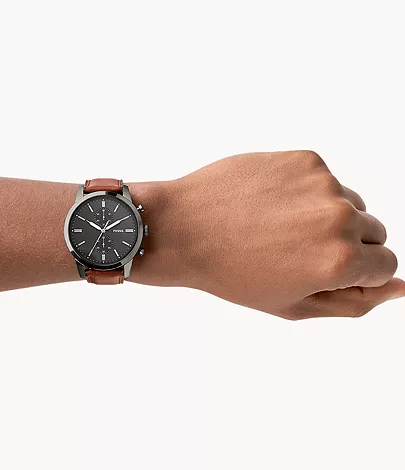 This 44 mm Townsman features a grey satin dial with stick indices, chronograph movement and an amber leather strap.