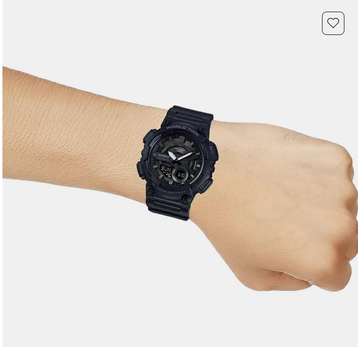 Discover Casio watch for men, featuring a black dial, a black strap made of resin in a round case. Built with mineral glass and resin body to balance clarity and durability. Dimensions include 47 mm dial size, 22 mm strap width, 14 mm profile for comfortable wear. Key features: quartz movement, analog-digital display, 10 atm water resistance. A secure tang buckle ensures a dependable fit.