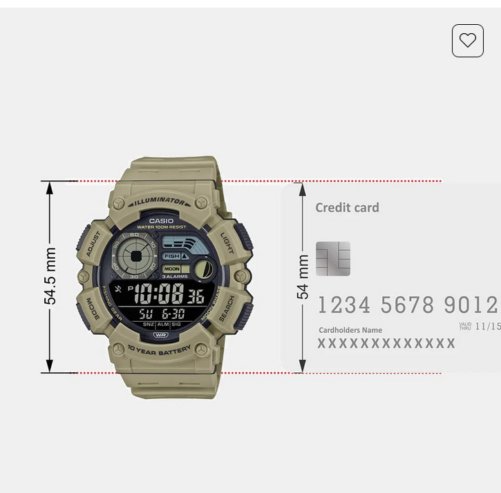 sized, easy-read design. Complete with 10-year battery, water resistance up to 100 meters, LED light, and dual