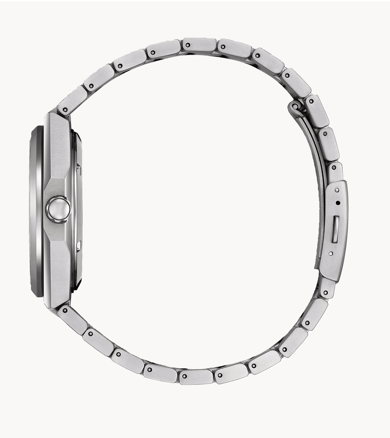 silver-tone Super Titanium™ case that is elevated with finely brushed