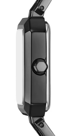 Dial style: black textured rectangular stainless steel dial