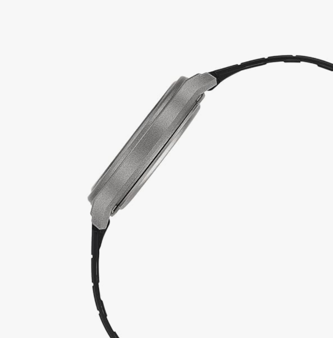 black hue that enhances the look of the watch. Safeguarded by a resin