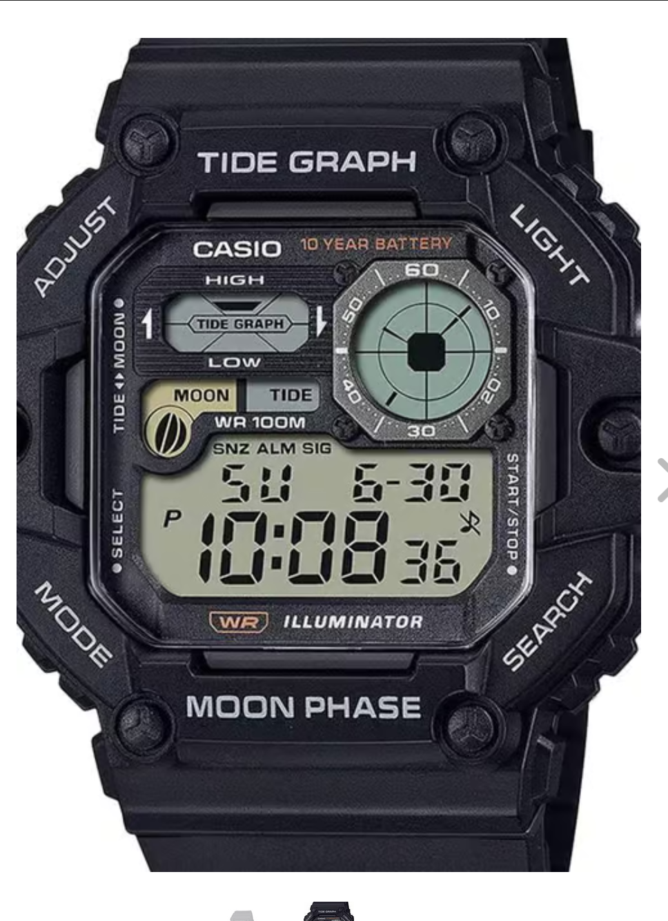 the Youth collection by Casio. It displays chronograph functionality