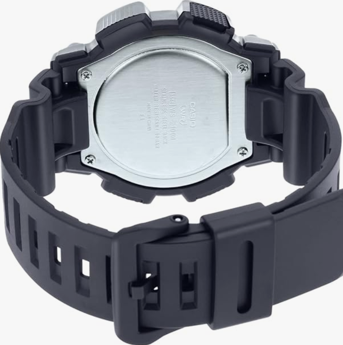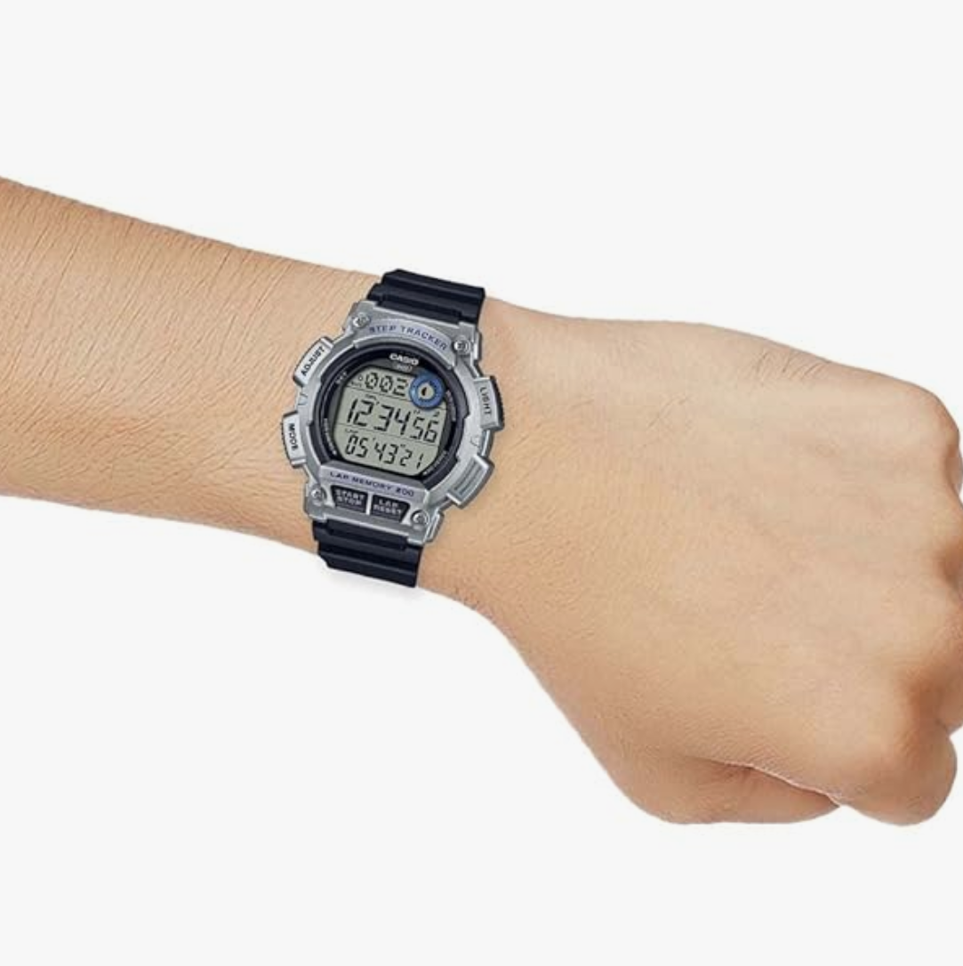 quartz movement, digital display, 10 atm water resistance. A secure