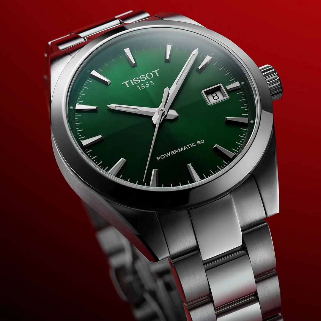 automatic version with its green dial and polished stainless steel