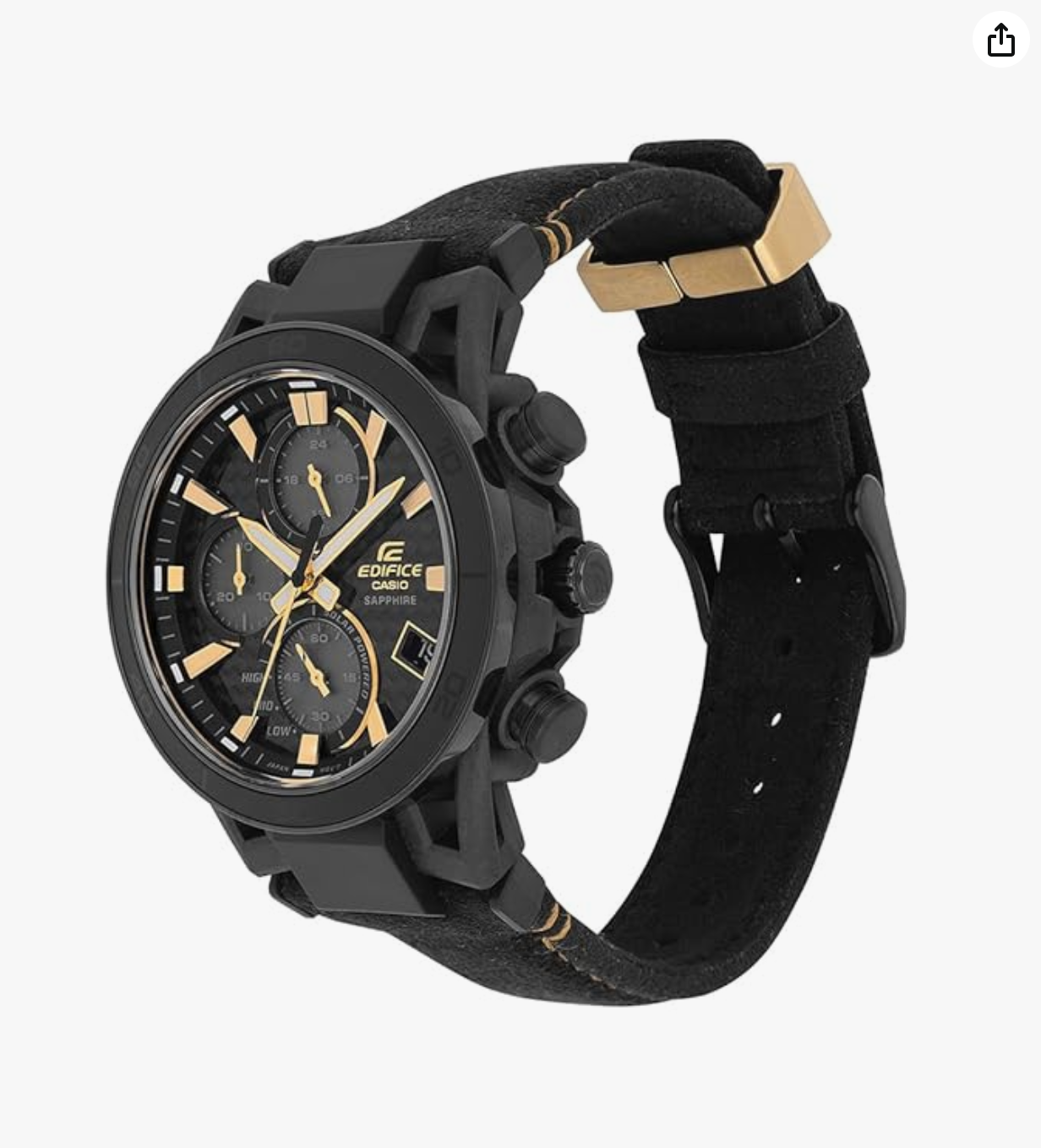 Edifice collection by Casio. Its polyester strap exudes a black hue that