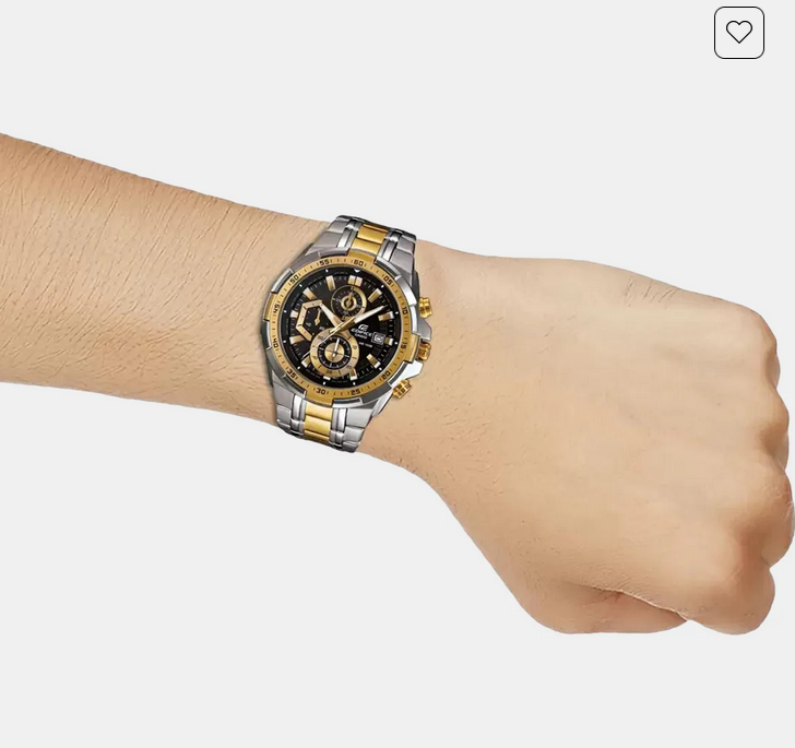Discover Casio watch for men, featuring a black dial, a two tone strap made of stainless steel in a round case. Built with mineral glass and stainless steel body to balance clarity and durability. Dimensions include 50 mm dial size, 20 mm strap width, 12 mm profile for comfortable wear. Key features: quartz movement, chronograph display, 10 atm water resistance. A secure push-button deployment ensures a dependable fit.