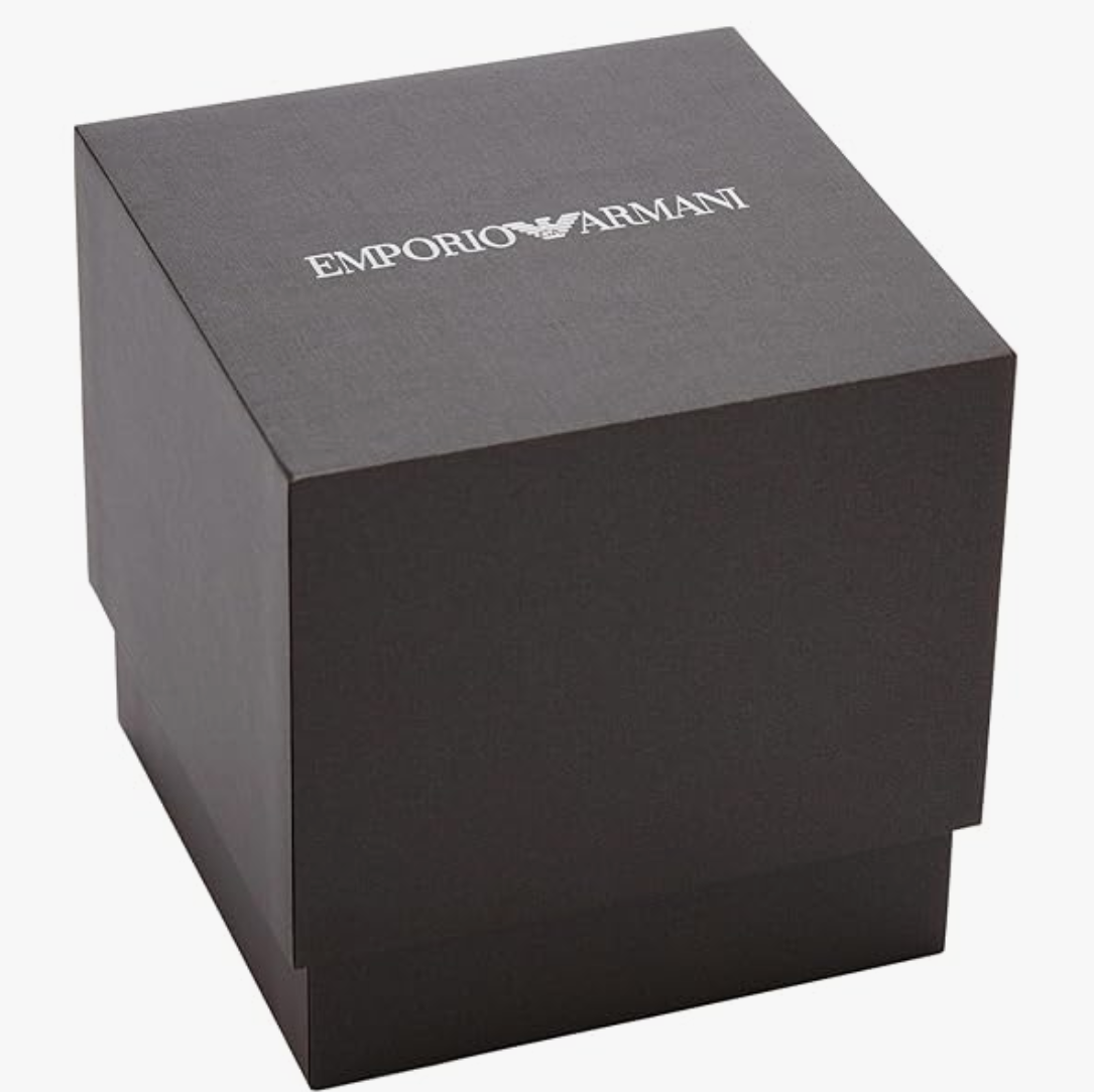 This sleek Emporio Armani two hand timepiece features a pale gold tone,