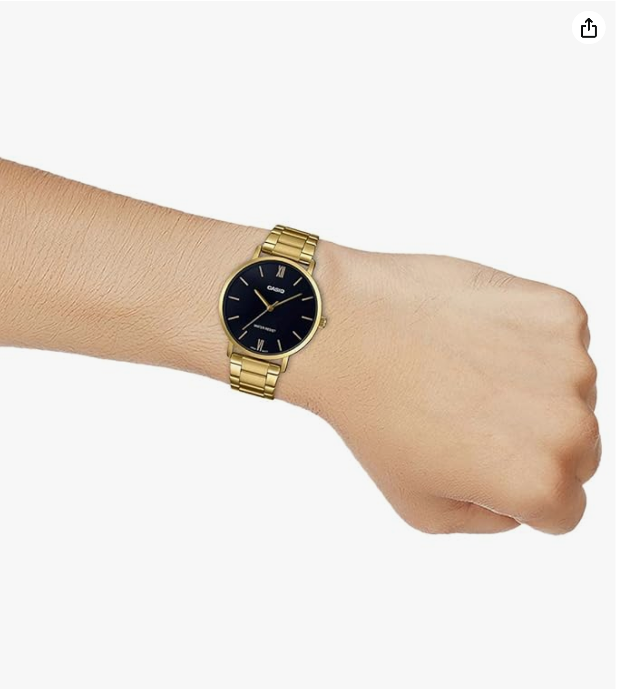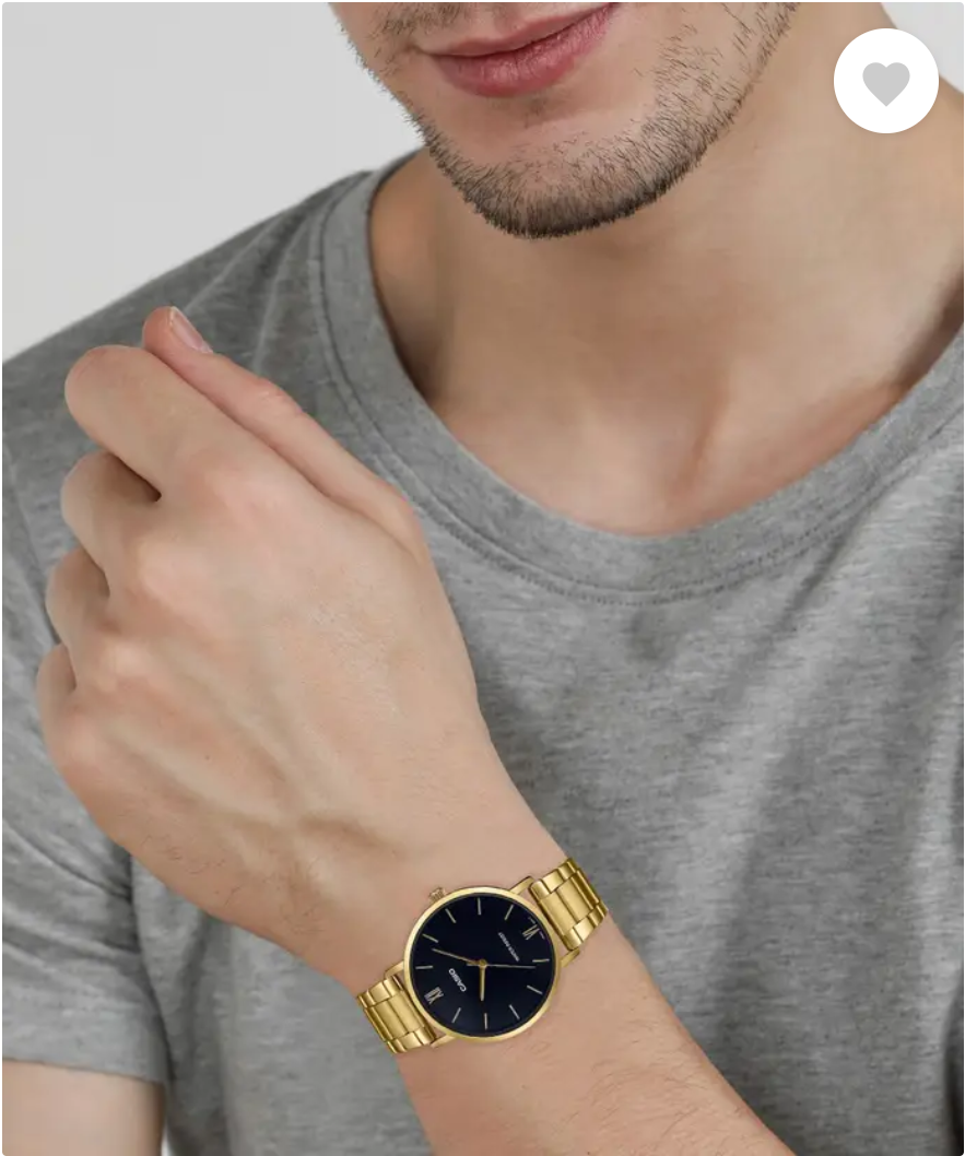 Enticer Men collection by Casio. The black round dial exudes plain three