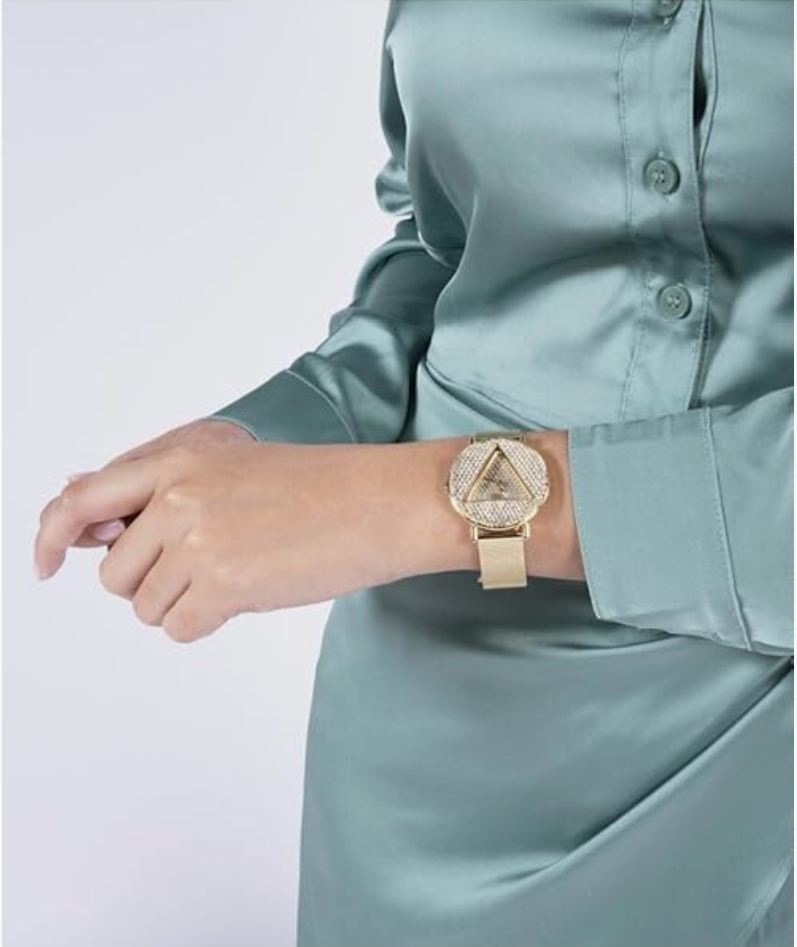 piece for the Guess Girl. The dial is framed by signature triangle logo,