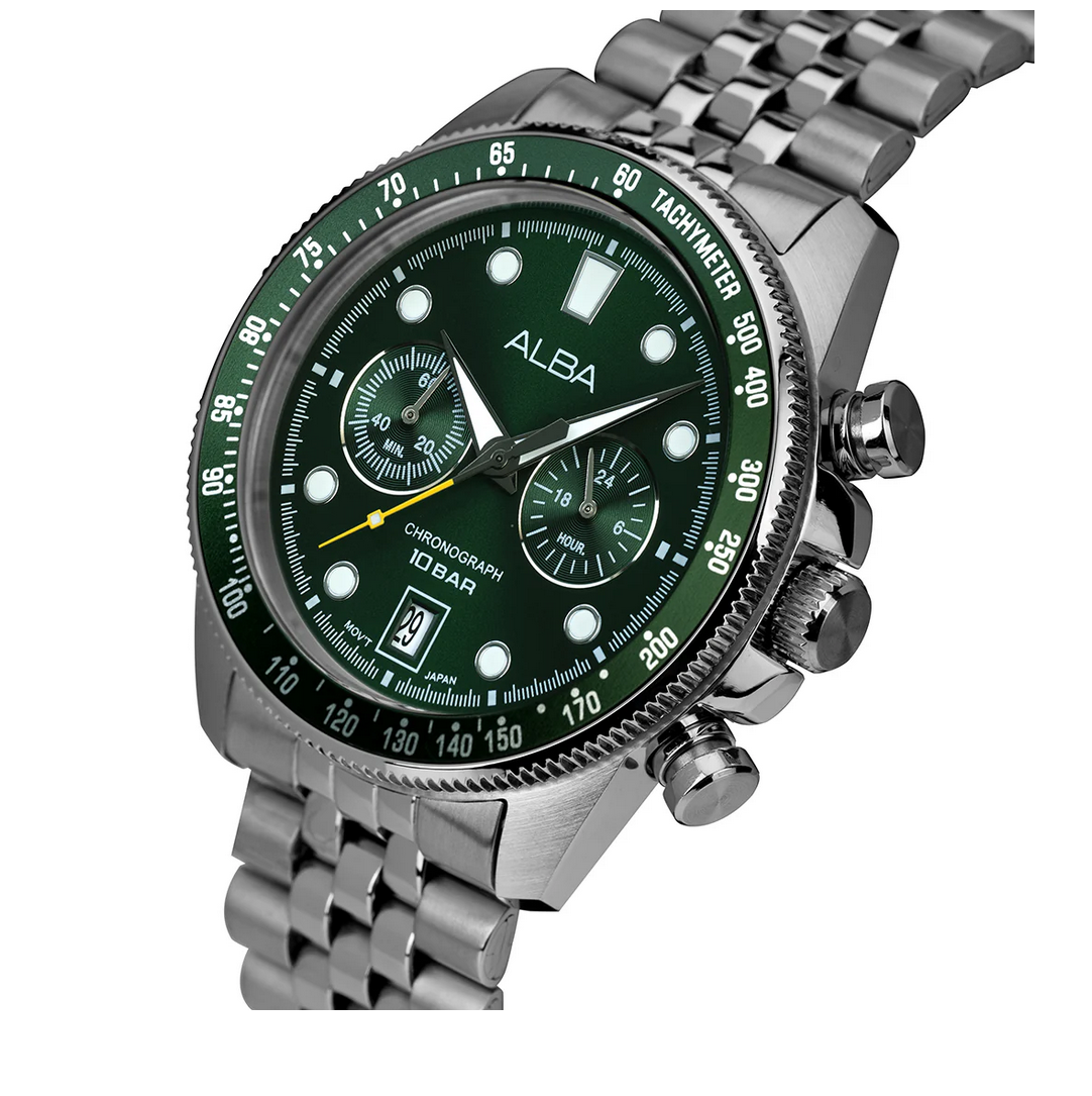 Men Quartz Green Dial Chronograph Steel Watch A4B029X1