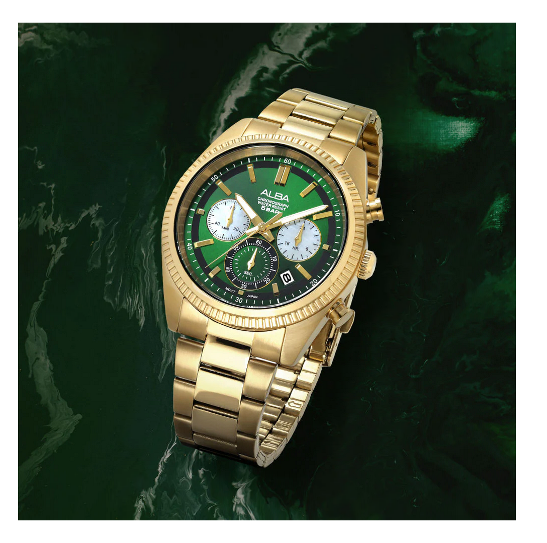 Men Quartz Green Dial Chronograph Steel Watch AT3K12X1