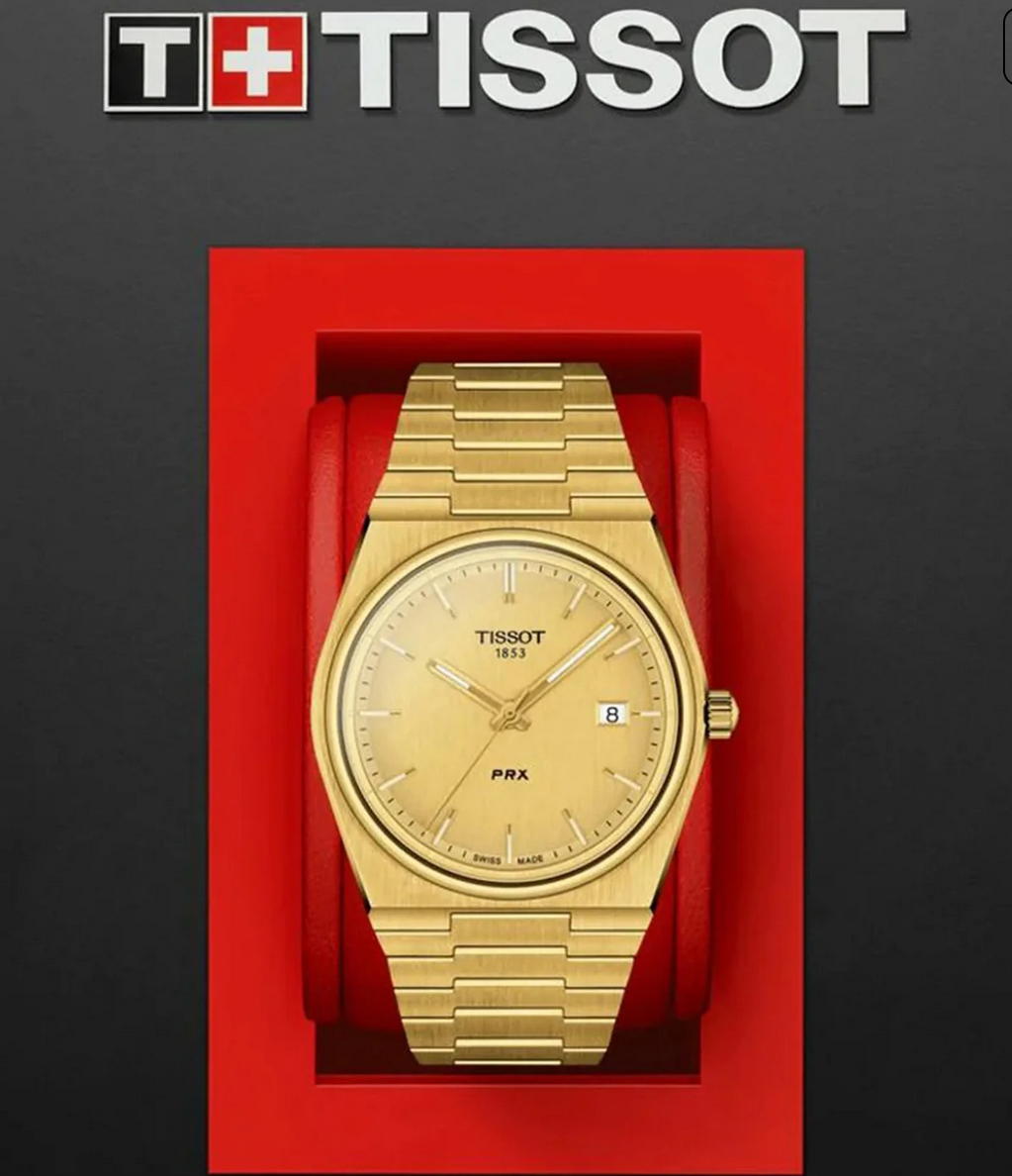 The golden mirror dial creates bold presence while maintaining practical