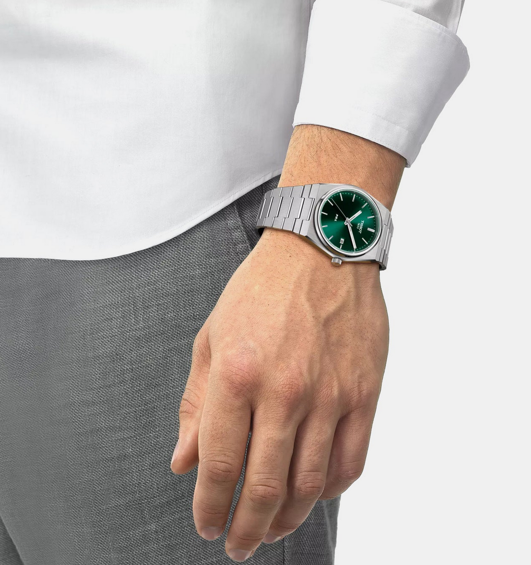 The light green dial adds modern vibrancy while maintaining structured clarity and balance.This model is ideal for men seeking reliable Swiss quartz precision with fresh integrated styling.