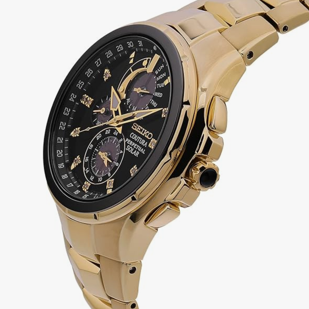 SEIKO’s Coutura collection is a showcase of the brand’s technical finesse and attention to detail, offering solar-powered functionality within bold, modern silhouettes. Known globally for pushing boundaries in watch innovation, SEIKO designed the Coutura series for wearers who value performance and precision wrapped in stylish form.