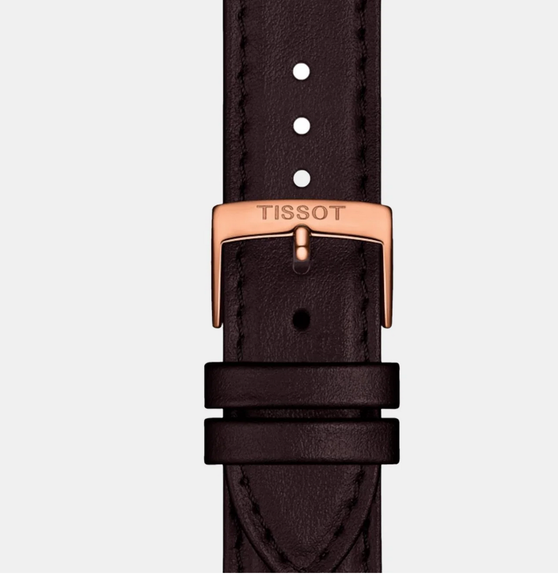 The T143410360 1100 distinguishes itself with its classic white dial and warm leather strap pairing, creating a sense of timeless poise. The dial’s clean layout feels composed and intentional, emphasising legibility and functional balance. On the wrist, the watch reads as familiar yet polished — a design that feels at ease in both casual and smart contexts.