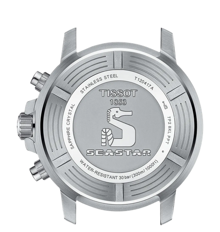The Tissot Seastar 1000 is the ultimate diving watch, with its high water-resistance up to a pressure of 30 bar (300 m/1000 ft), screw-down crown and case back as well as its unidirectional ceramic bezel.