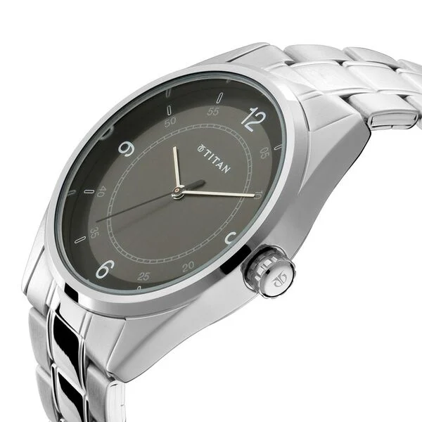 A precise accessory to match your workplace demands needn't come at a hefty price. This timepiece with black dial and dual stainless-steel strap is simple yet eye-catching. The analogue function and features such as conventional quartz movement, a metal case for added protection and 5 ATM water resistance are penny plain elements that merit its classy style.