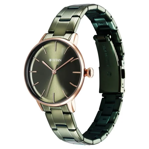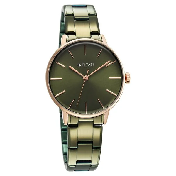 Display Brand Titan Name Titan TGIF Quartz Analog Green Dial Green Stainless Steel Strap Watch for Women