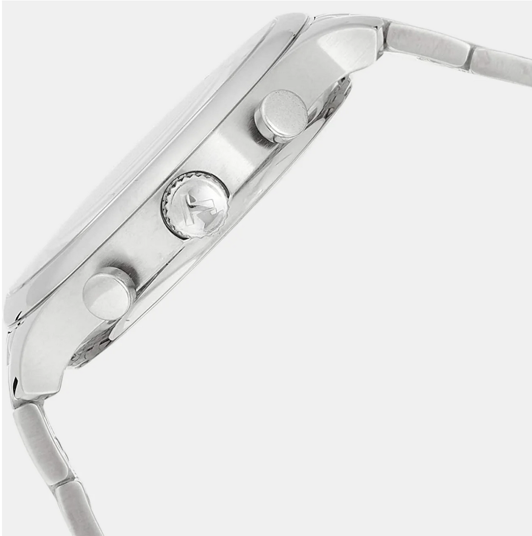 gently curved case.Dial Color:Black,Strap Color:Silver,Code:
